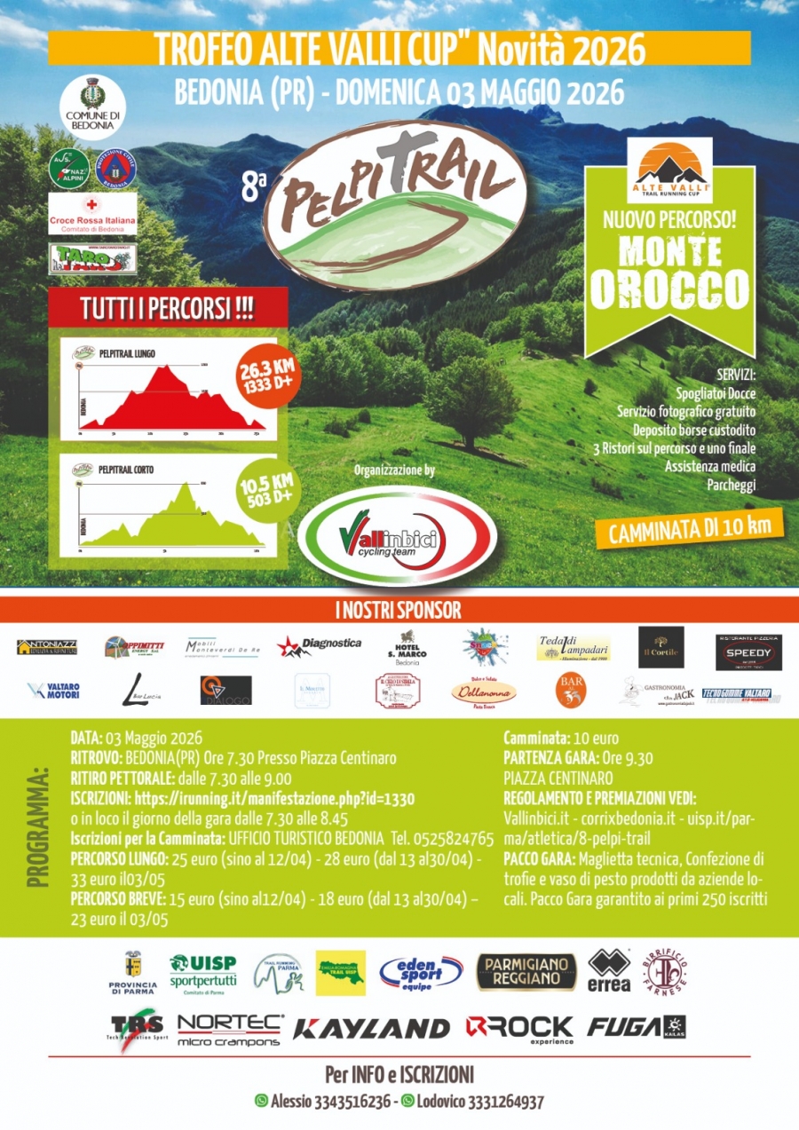 Regolamento e premiazioni: https://www.uisp.it/parma/atletica/8-pelpi-trail